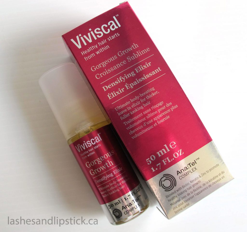 Viviscal’s Gorgeous Groth Densifying Range is made up of 3 products: shampoo, conditioner, and an elixir.