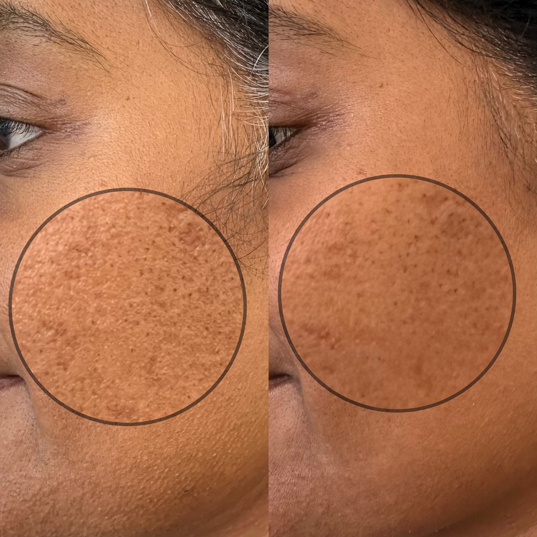 - Evened Skin Tone: RF Microneedling addresses hyperpigmentation, sunspots, and uneven skin tone, resulting in a more uniform, glowing complexion.